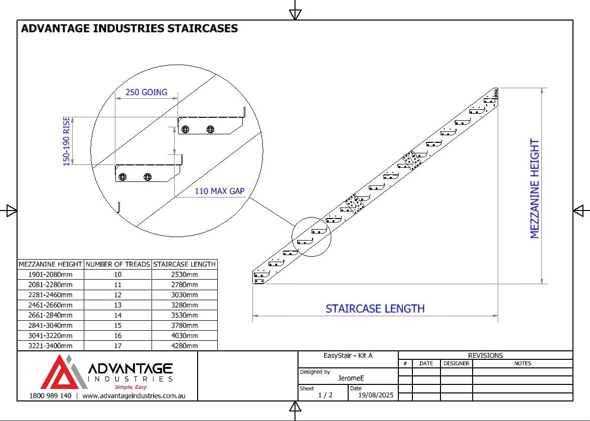 The EasyStair bolt-together staircase kit is designed for sheds, factories and farm sheds. EasyStair is the ideal solution for sites where access is limited or crane lifts aren’t possible. Supplied flat-packed, each kit can be easily transported and assembled in place by just two people—no heavy lifting equipment required.