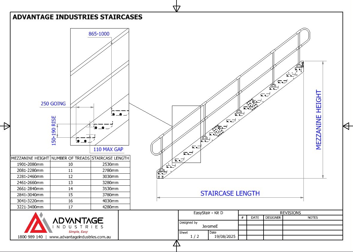 The EasyStair bolt-together staircase kit is designed for sheds, factories and farm sheds. EasyStair is the ideal solution for sites where access is limited or crane lifts aren’t possible. Supplied flat-packed, each kit can be easily transported and assembled in place by just two people—no heavy lifting equipment required.