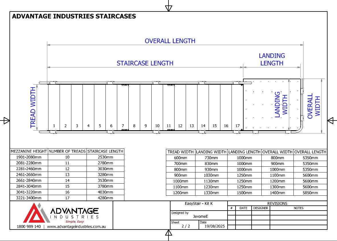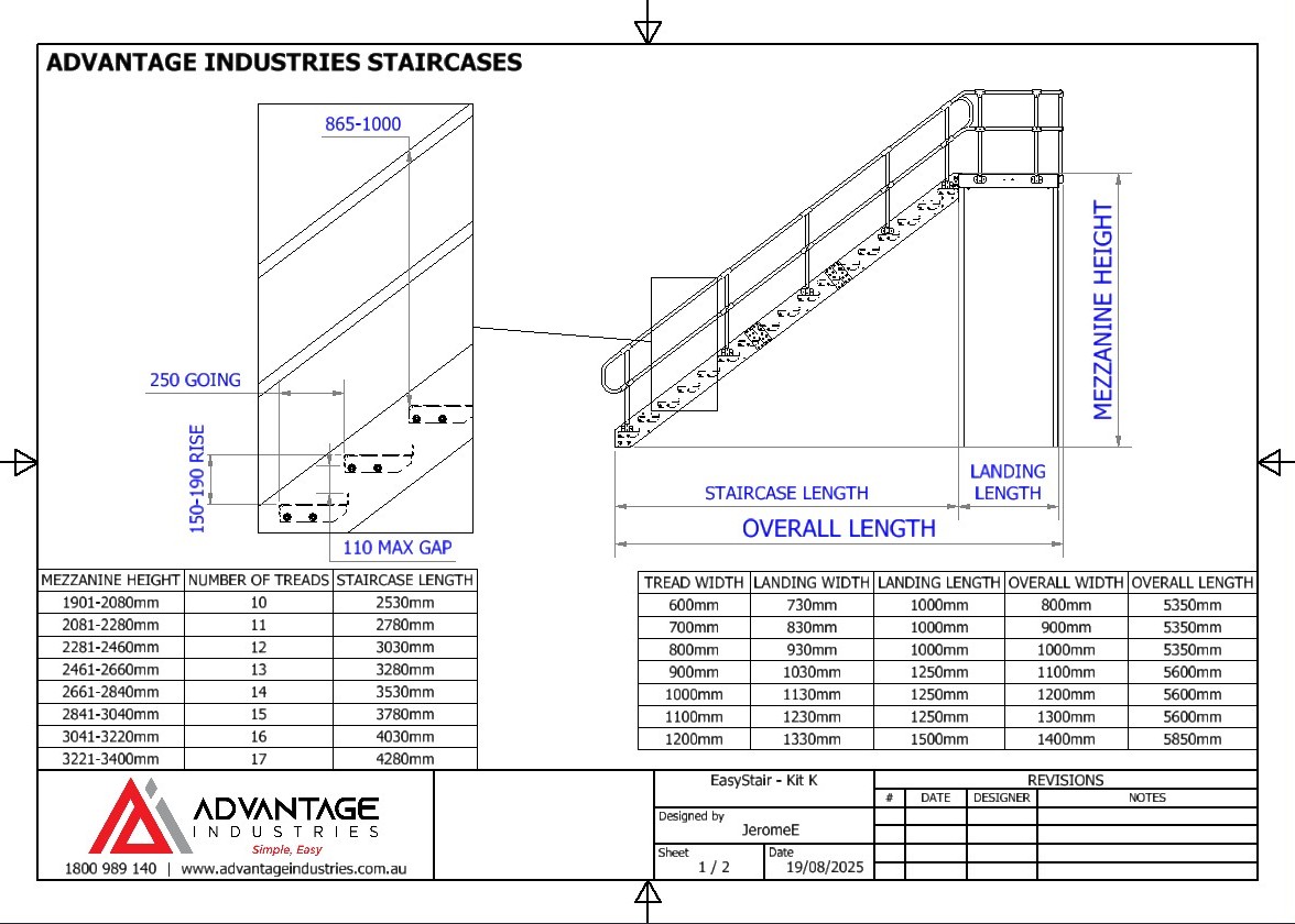 The EasyStair bolt-together staircase kit is designed for sheds, factories and farm sheds. EasyStair is the ideal solution for sites where access is limited or crane lifts aren’t possible. Supplied flat-packed, each kit can be easily transported and assembled in place by just two people—no heavy lifting equipment required. ModuRail  is the perfect safety railing solution designed to complement your EasyStair and mezzanine floor. The railing system provides a strong, durable, and low-maintenance balustrade.