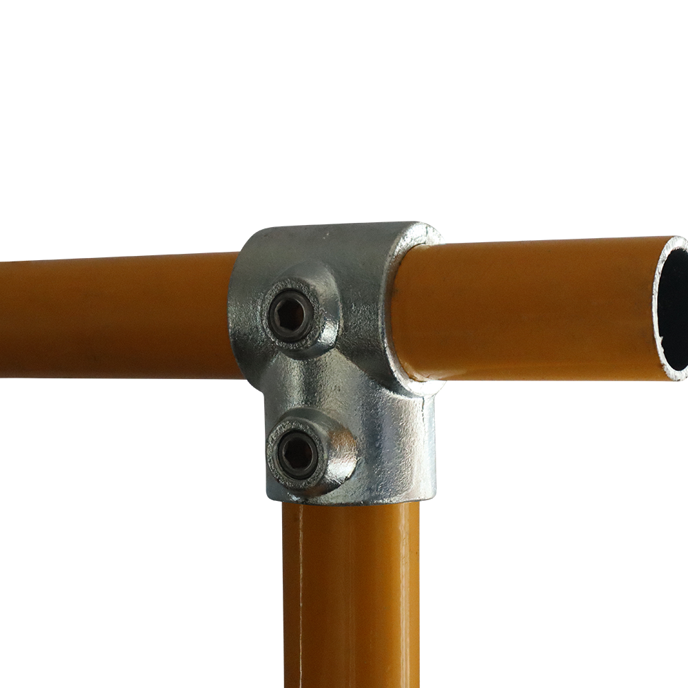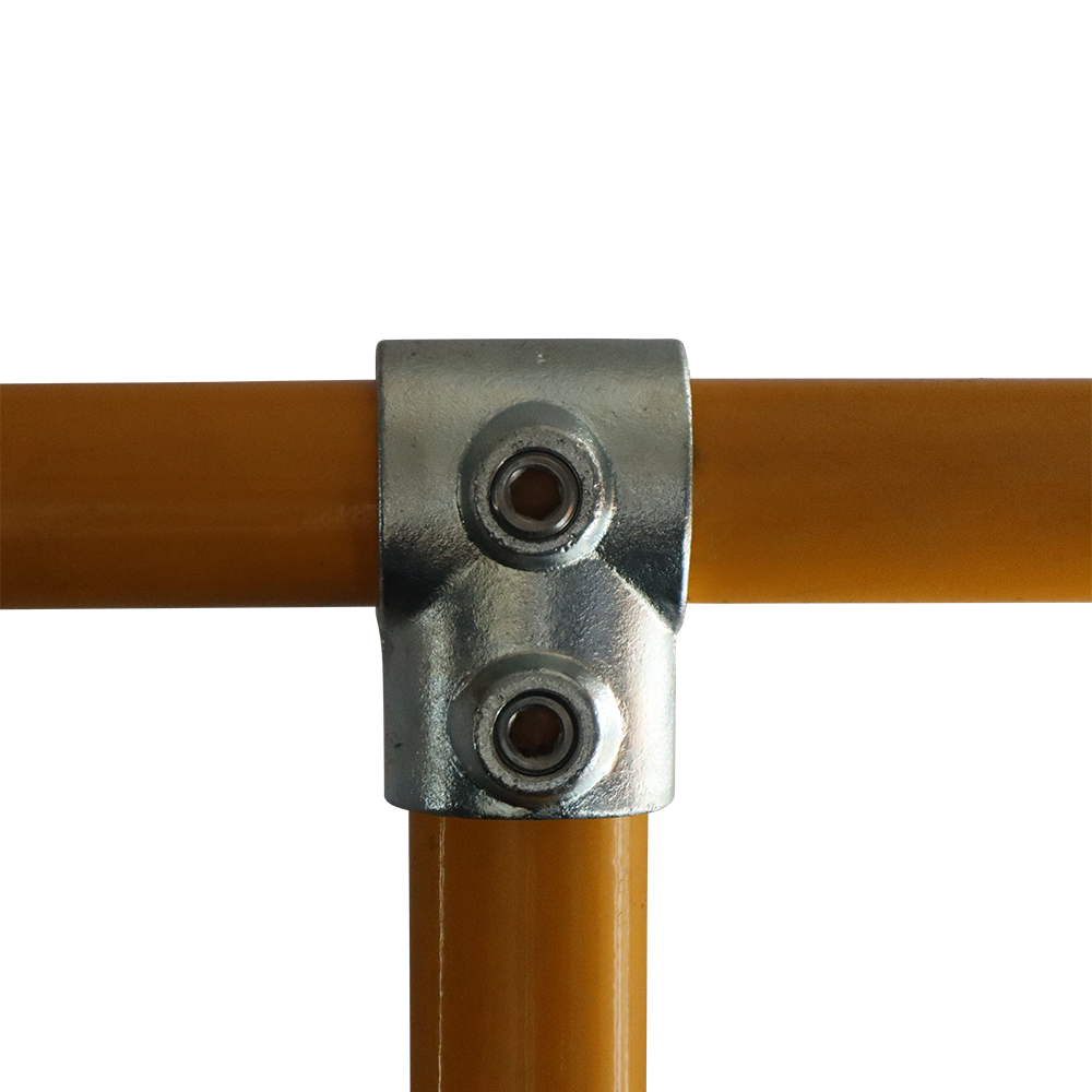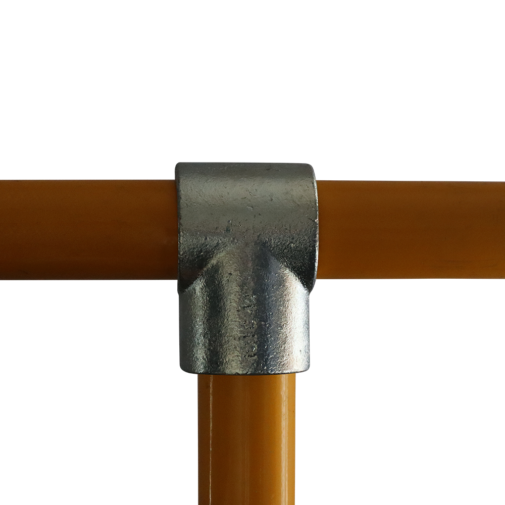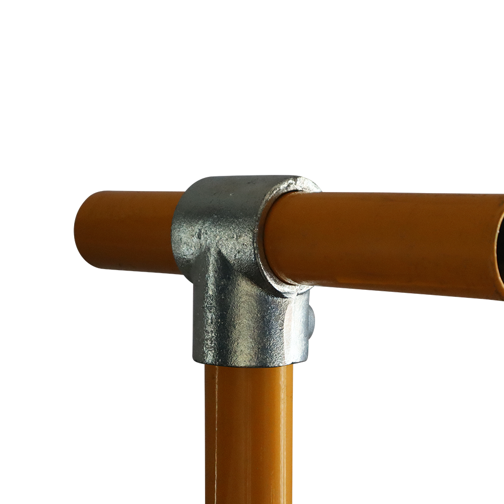 Typically used on straight and level rails to connect the upright to the top rail or end or mid rail to the upright. Tubes cannot be joined inside a Short Tee Fitting, to join tubes inside the fitting use the Long Tee Fitting. Normally used in conjunction with the 90 degree Elbow Fitting.