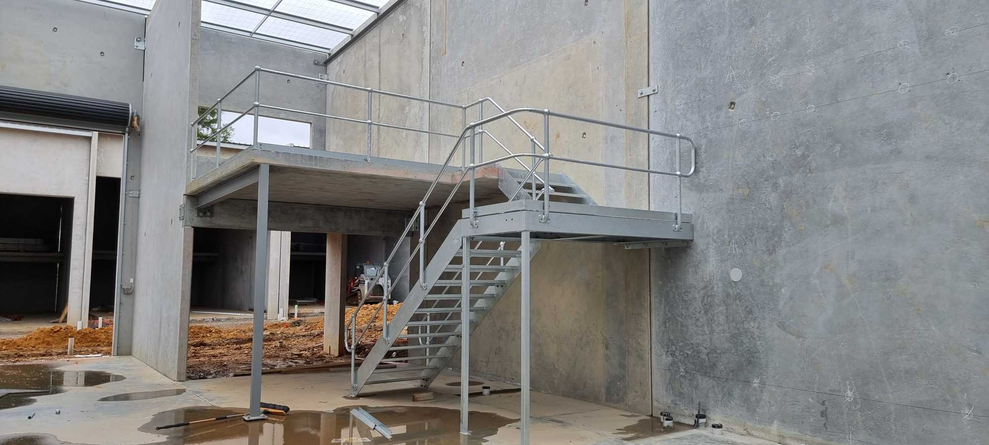 “You guys were a pleasure to deal with, kept to your word and delivered with speed. Your staircases and railings are perfect solution for these factory units. They suit the industrial environment, durable and solid. Installation was so easy, we installed 13 staircases in 1 day with just 2 guys and a Manitou. Lift the stairs up, drive into the unit, bolt off and your on to the next one, it was so good”